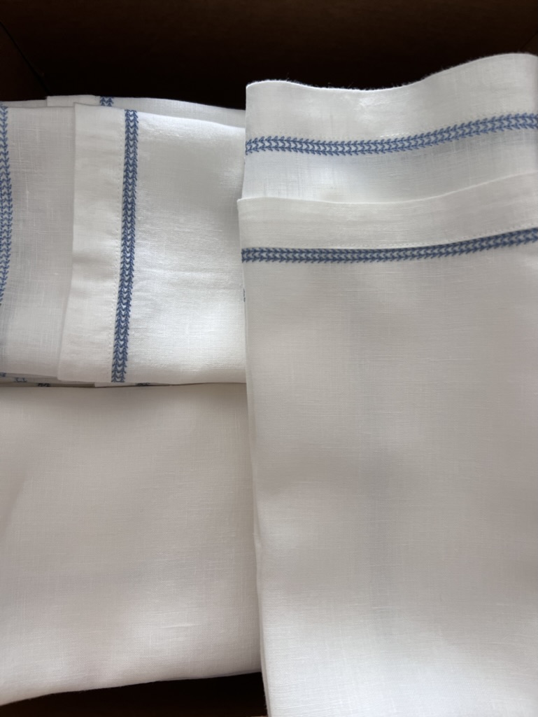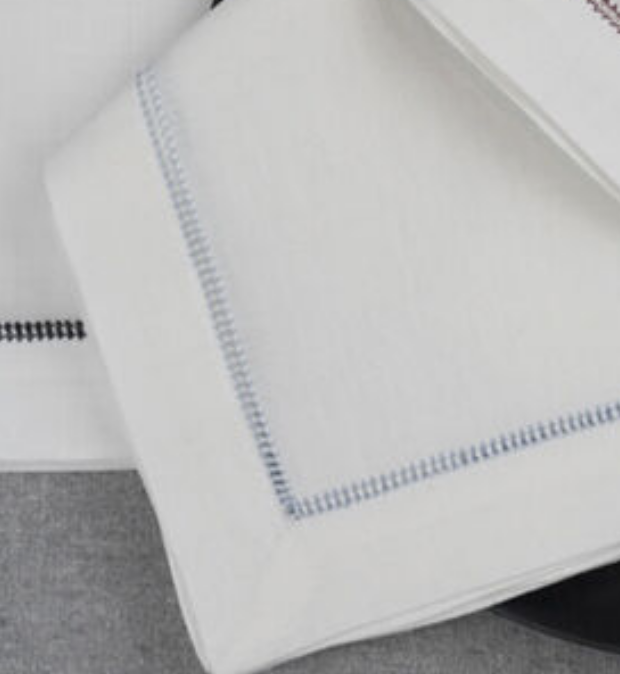 Napkin: White Cotton with Blue Hemstich
