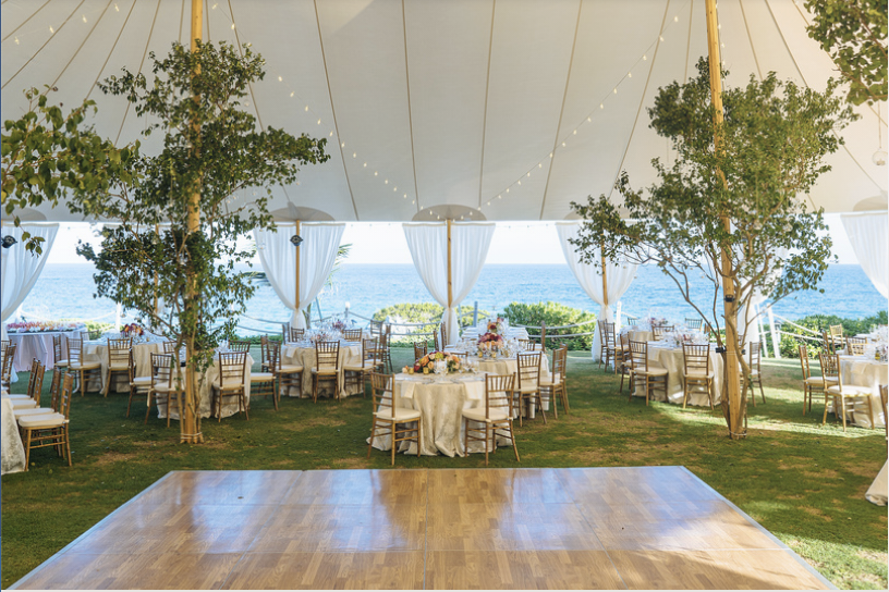 Description: Wood dance floor with sliver trim.