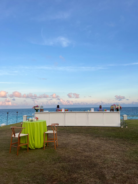 White 6' straight bar with white top