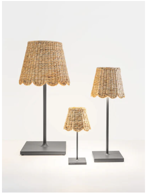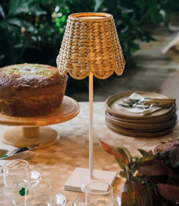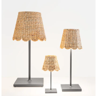 Zafferano Poldina White Table Lamp with Hyacinth Woven Lampshade